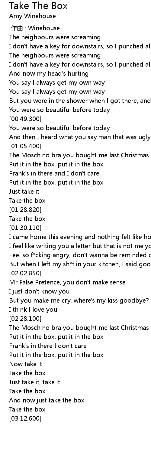 | [02:28.610] | The Moschino bra you bought me last Christmas |