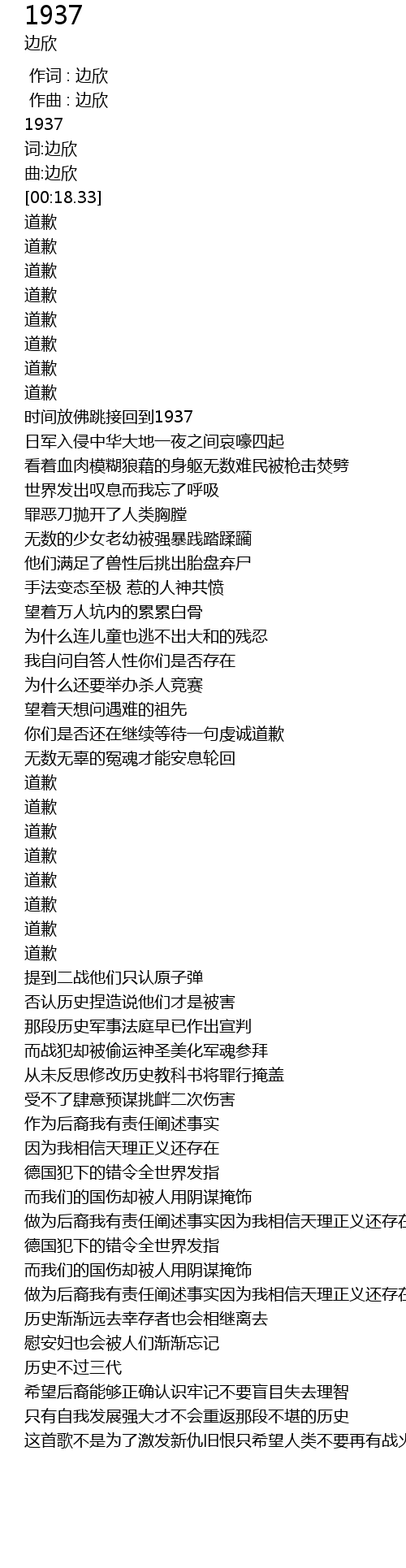 | [00:38.83] | 道歉 |