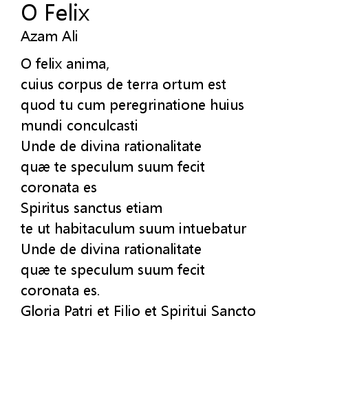| 歌曲 | O Felix |