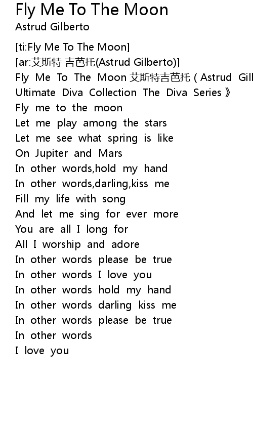 | [00:01.72] | Fly Me To The Moon ai si te ji ba tuo Astrud Gilberto The Ultimate Diva Collection The Diva Series |