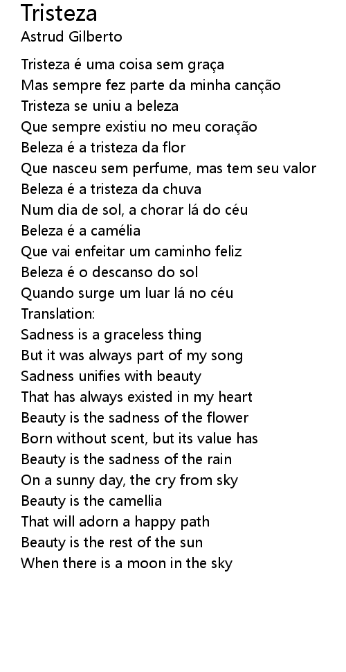 | Tristeza se uniu a beleza | |