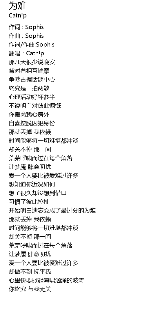 | 作词/作曲:Sophis | |
