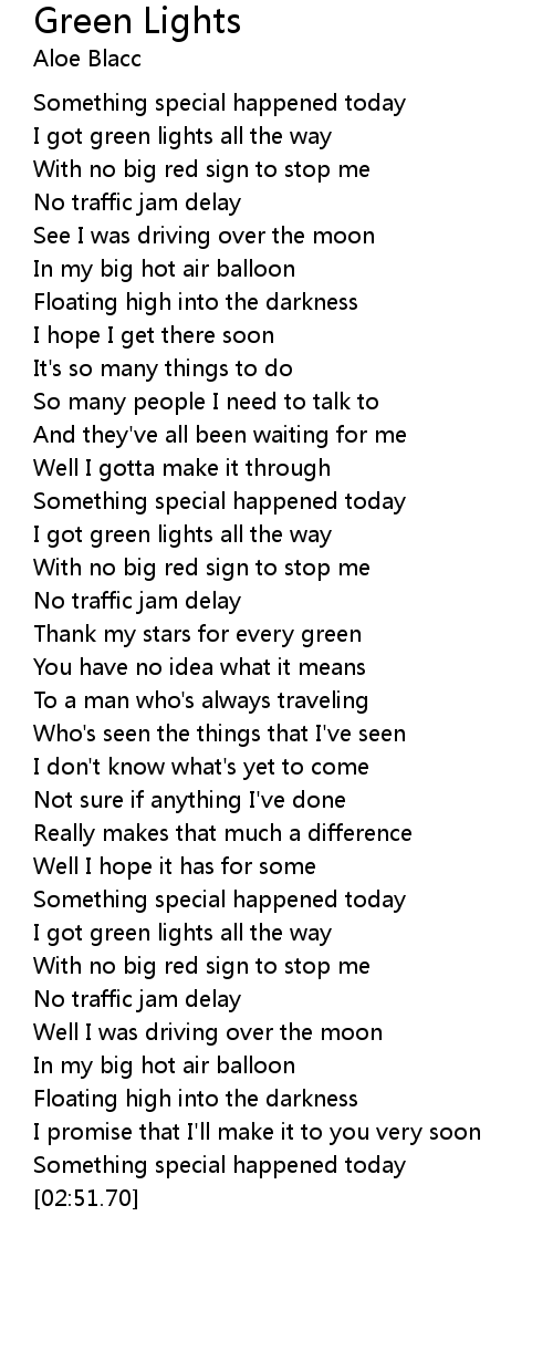 I got green lights all the way |