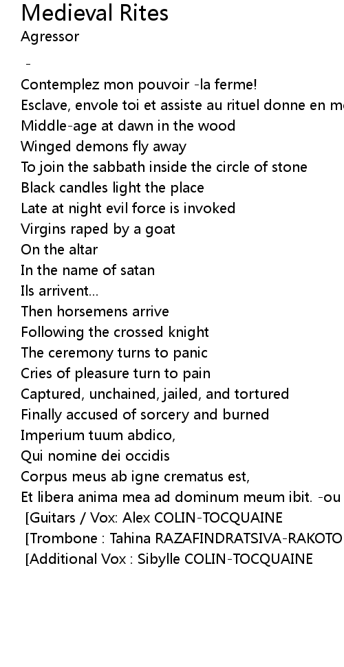 | Et libera anima mea ad dominum meum ibit. -ou sont-ils? -les voici mon seigneur. [Musicians:] [Guitars / Vox: Alex COLIN-TOCQUAINE] [Bass: Joël GUIGOU] [Drums : Morten NIELSEN] [Trombone : Tahina RAZAFINDRATSIVA-RAKOTONIRINA] [Additional Vox : Carol HARROSCH] [Additional Vox : Sibylle COLIN-TOCQUAINE] |