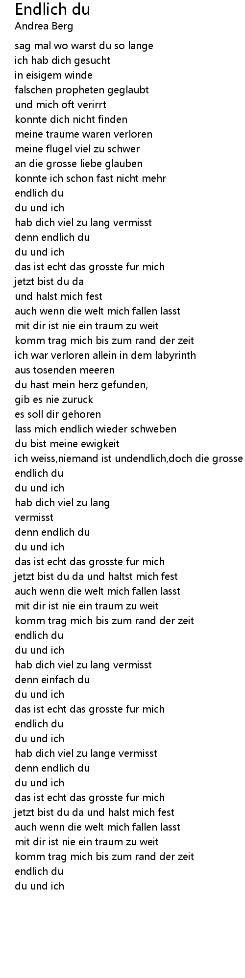 denn endlich du |