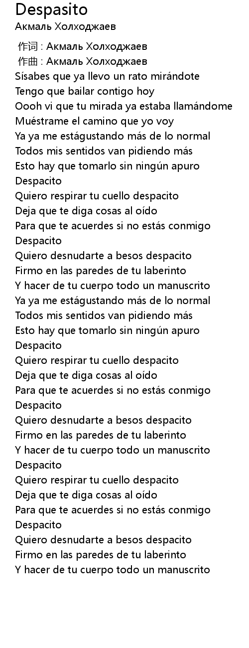 | [00:36.547] | Quiero respirar tu cuello despacito |