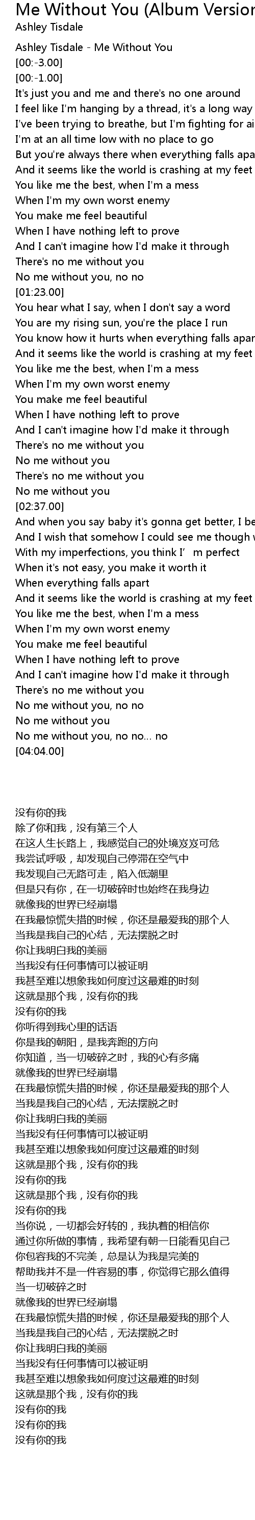 | [00:-4.00] | Ashley Tisdale - Me Without You |