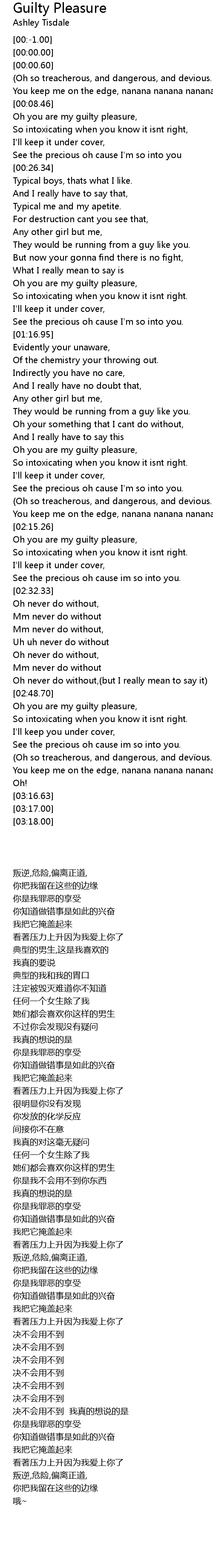 | [01:50.66] | Oh you are my guilty pleasure, |
