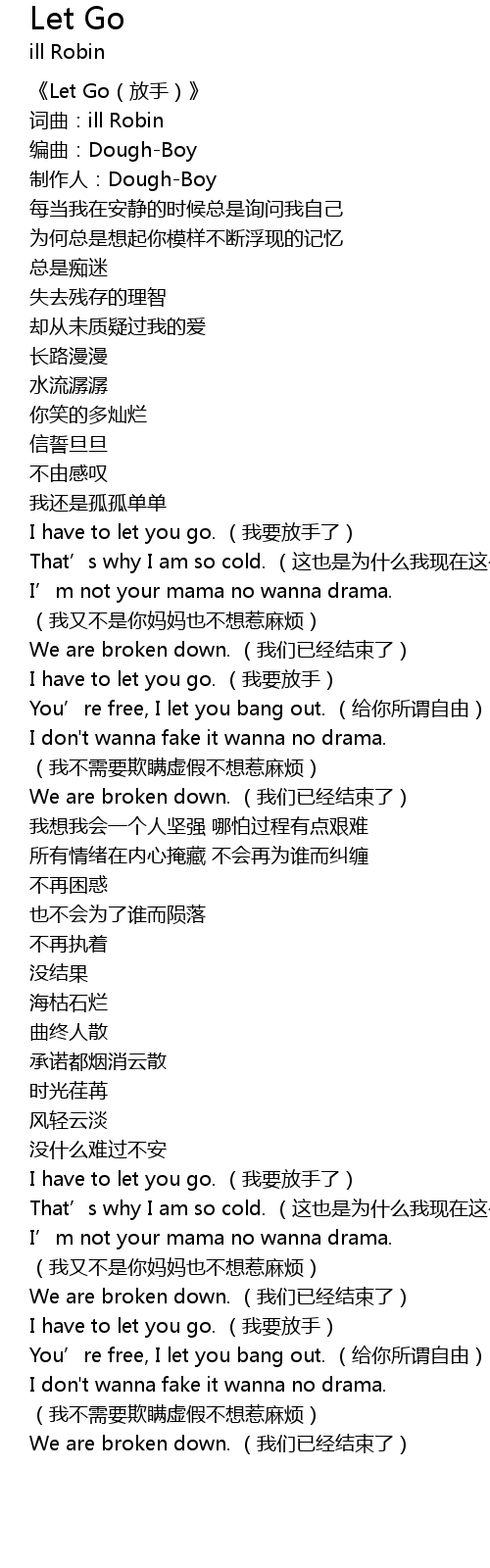 | I have to let you go 46 wǒ yào fàng shǒu le | |