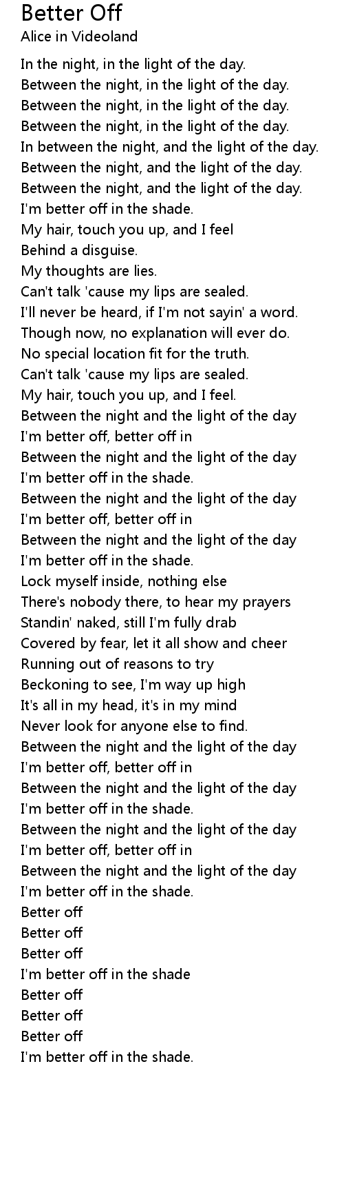 I'm better off, better off in |