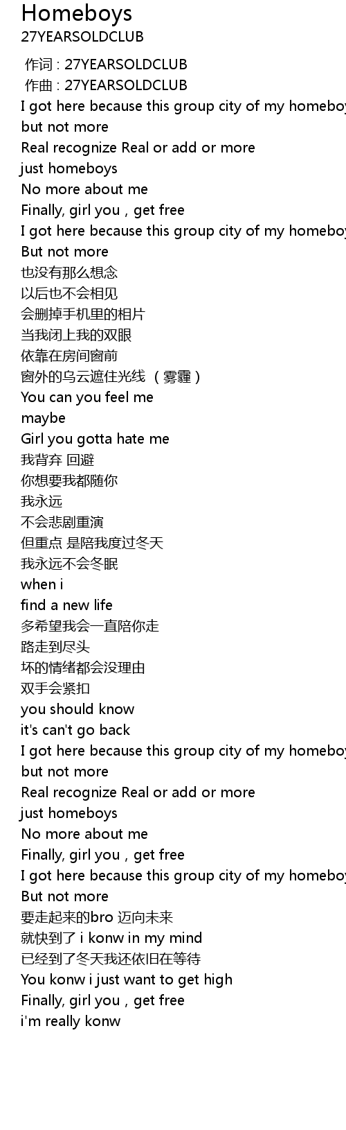 | 歌曲 | Homeboys |