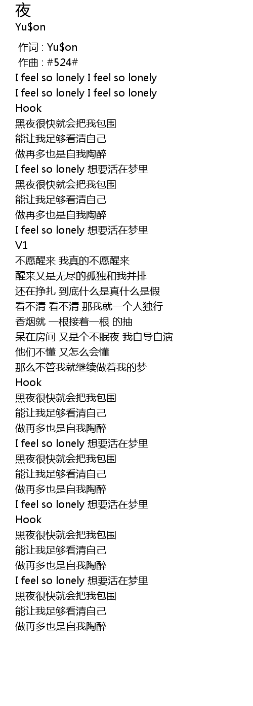 | [02:04.708] | I feel so lonely 想要活在梦里 |
