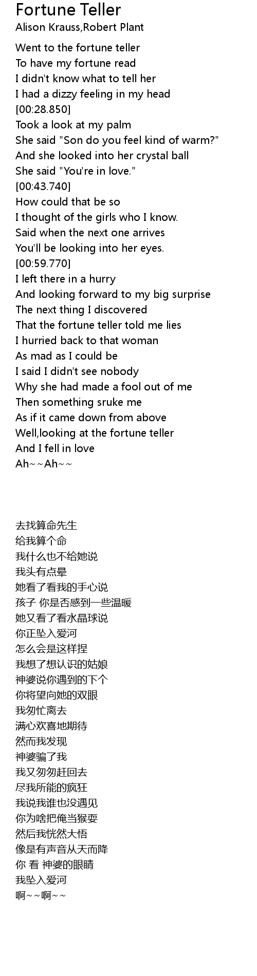 That the fortune teller told me lies |