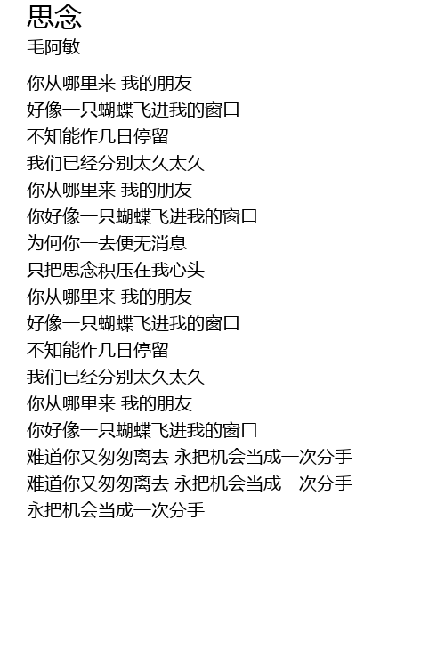 | [02:55.200] | 难道你又匆匆离去 永把机会当成一次分手 永把机会当成一次分手 |