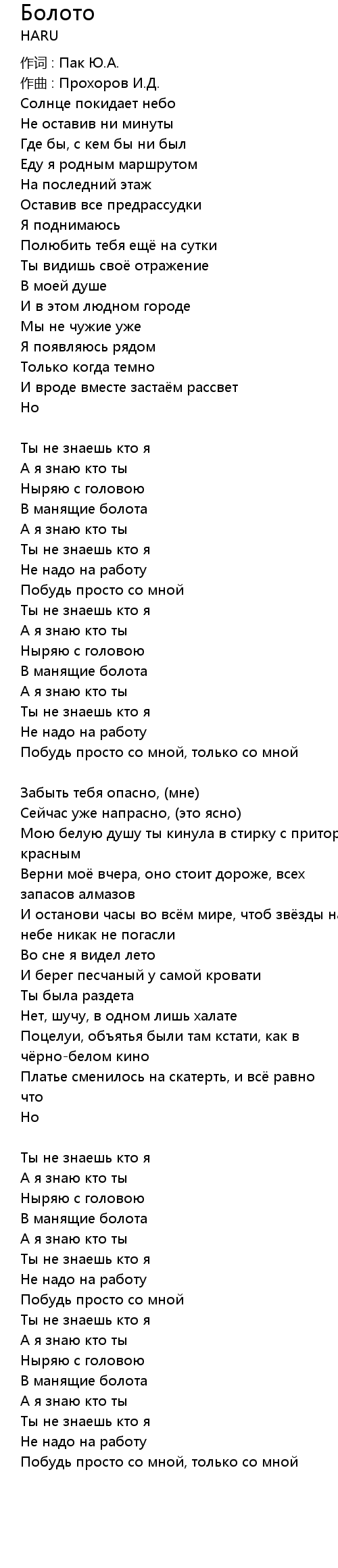Болото 歌词