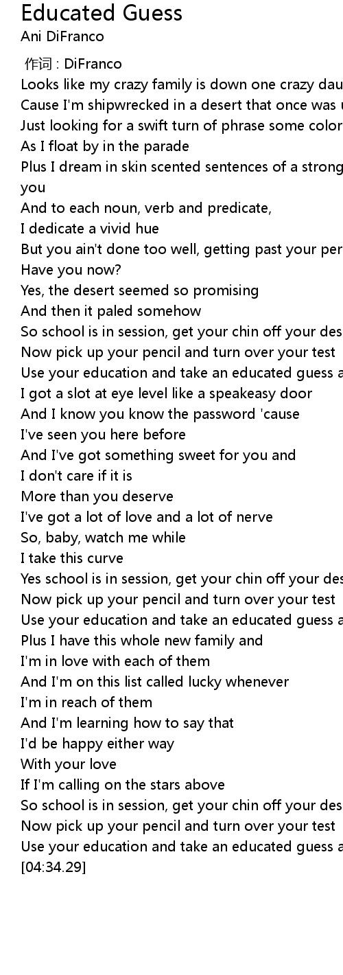 | [01:49.23] | Use your education and take an educated guess about me, about me |