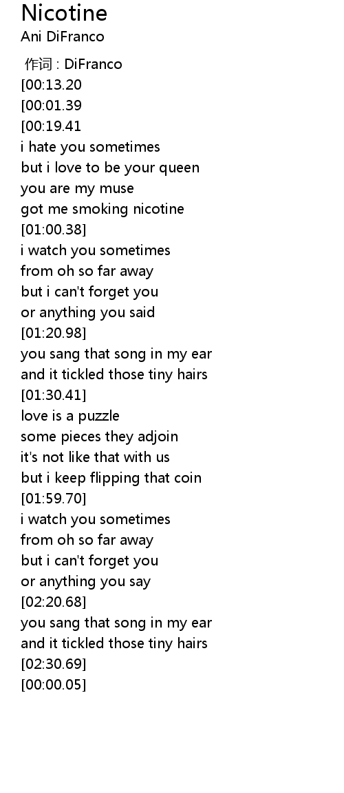 | [02:32.82][00:01.39] | ani difranco-nicotine |