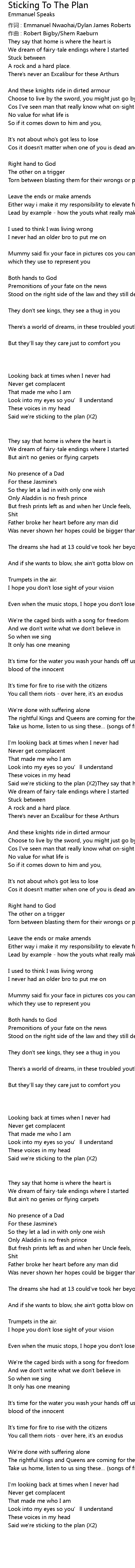 | 作词 : Emmanuel Nwaohai/Dylan James Roberts | |