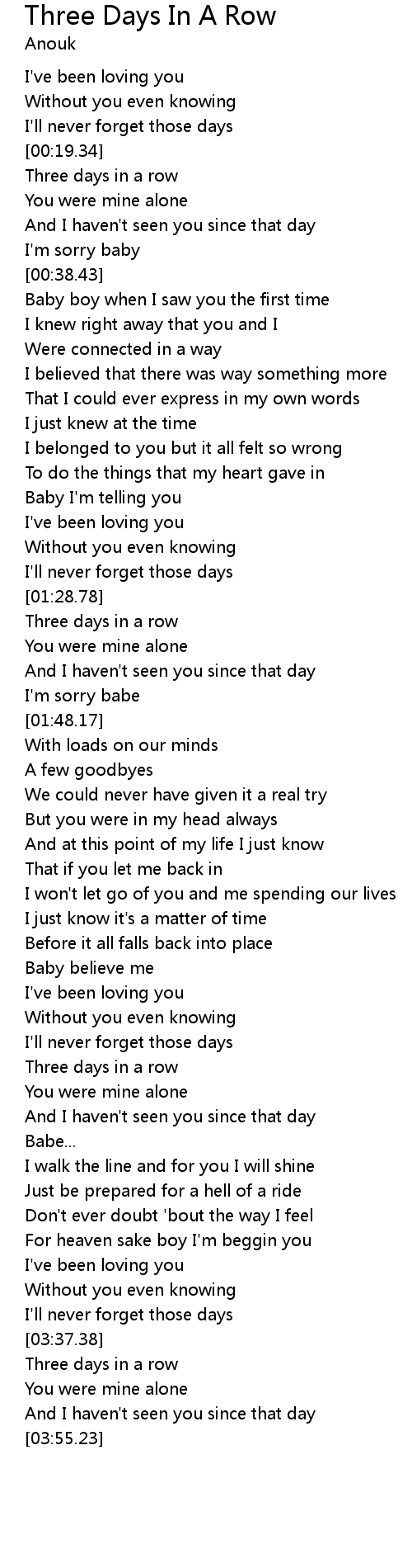 Three Days In A Row 歌词