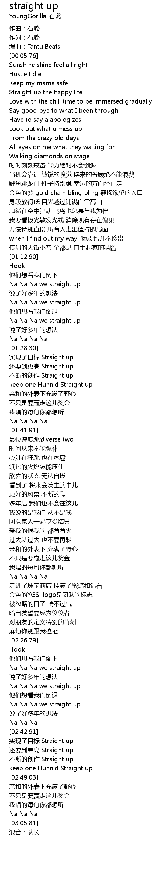 | [01:15.70] | Na Na Na we straight up |