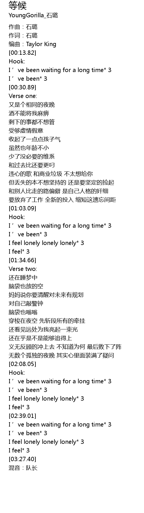 | [00:16.14] | I ' ve been waiting for a long time 3 |