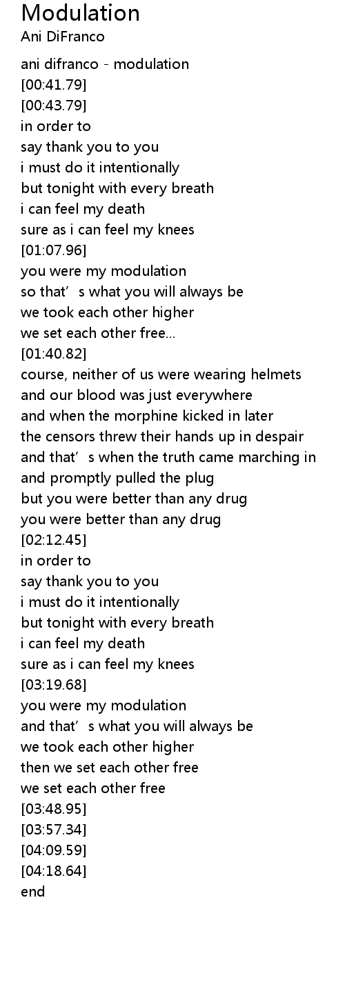 | [00:00.00] | ani difranco modulation |