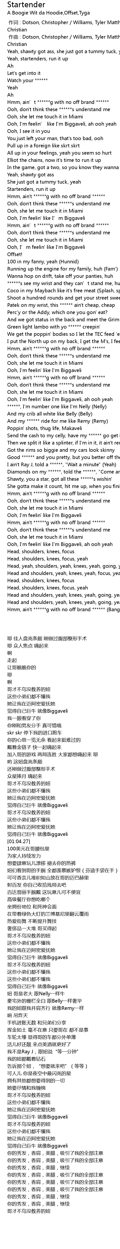 | [00:44.53] | Hmm, ain't ******g with no off brand ****** |