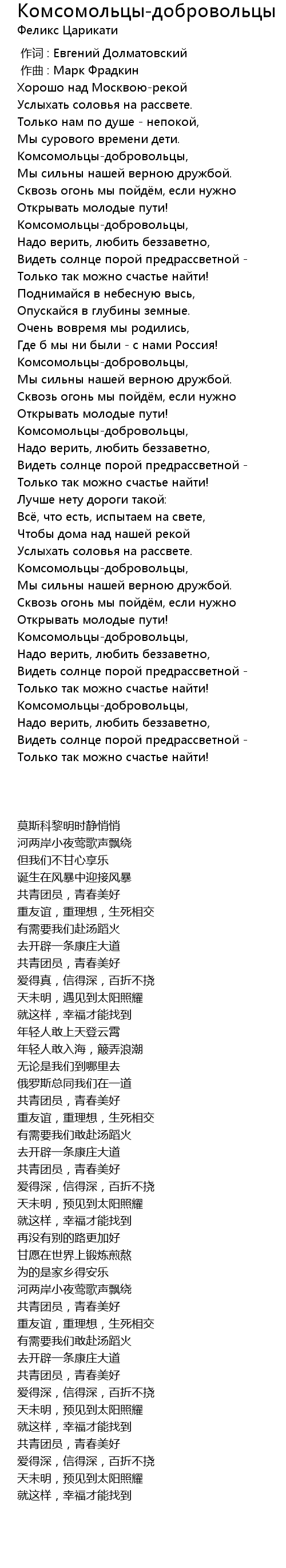 | 歌曲 | Комсомольцы-добровольцы |