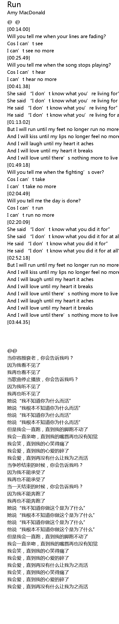 | [02:14.01] | Cos I can' t run |