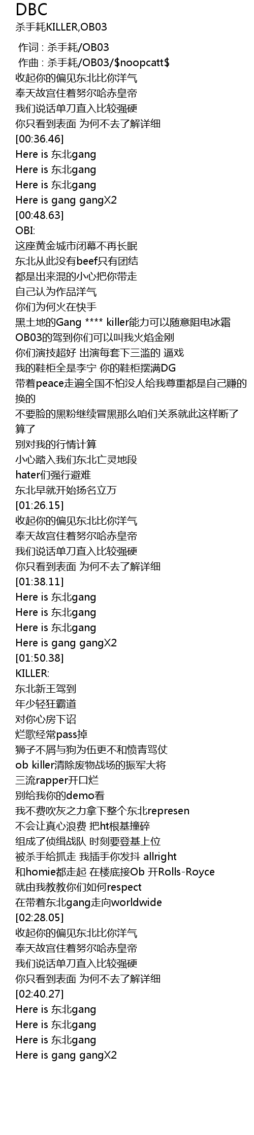 | [00:52.71] | 东北从此没有beef只有团结 |