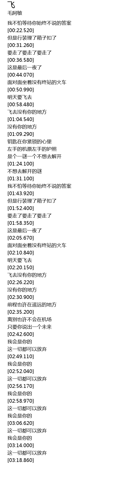 | [02:17.390] | 明天要飞去 |