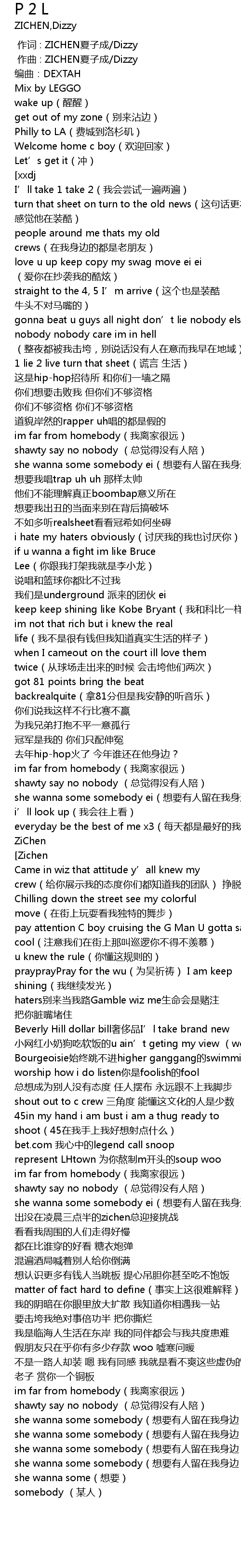 | [02:16.711] | shawty say no nobody (总觉得没有人陪) |
