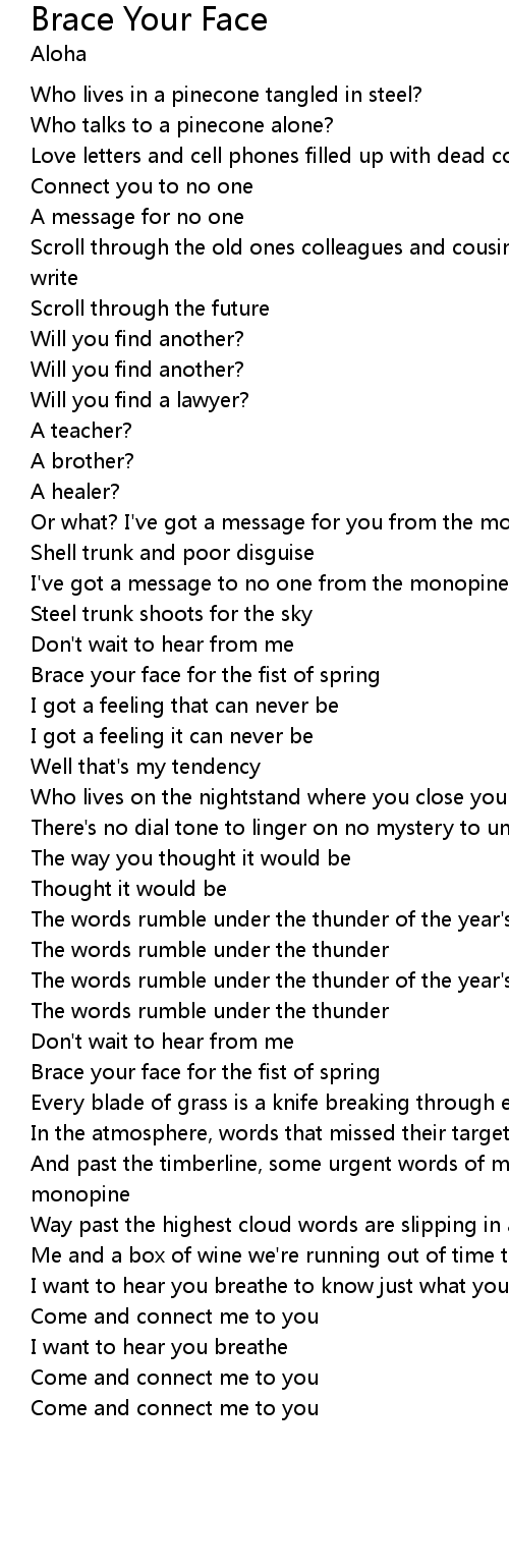 Way past the highest cloud words are slipping in and out of a trick dimension |