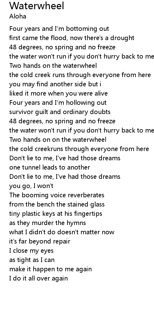 the water won't run if you don't hurry back to me |