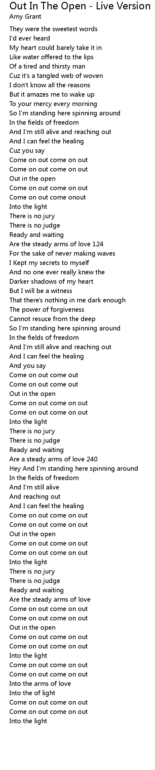 Out In The Open - Live Version 歌词