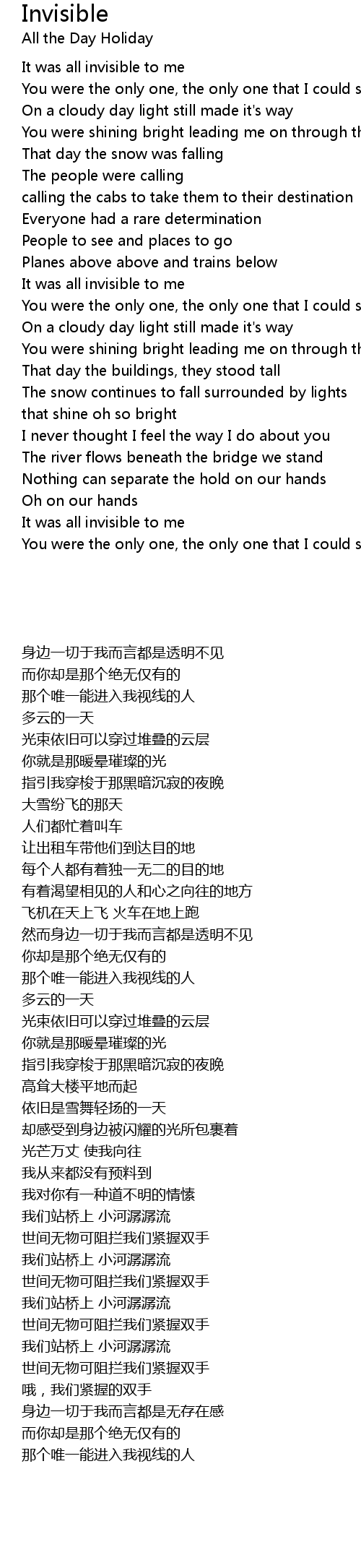 | [00:15.89] | 身边一切于我而言都是透明不见 |