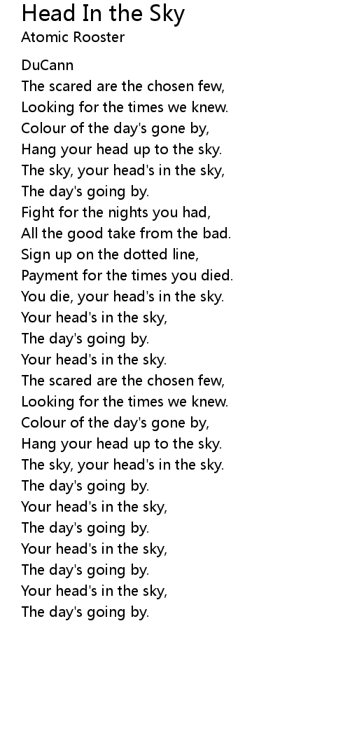 Your head's in the sky, |