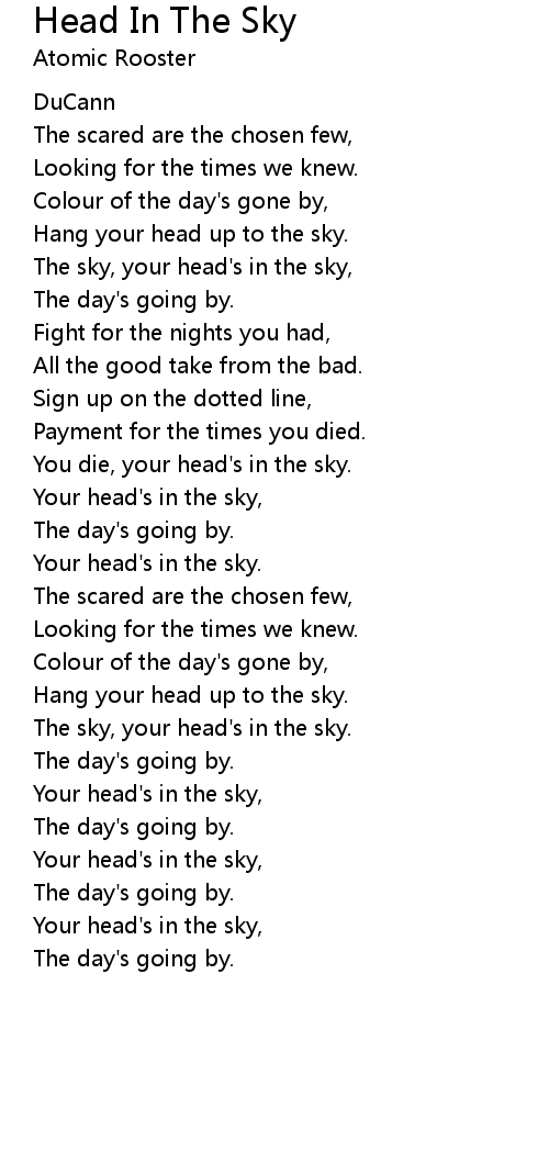 Your head's in the sky, |