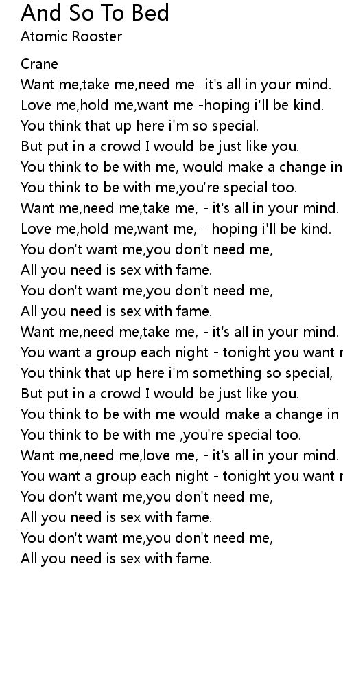 Want me,need me,take me, - it's all in your mind. |