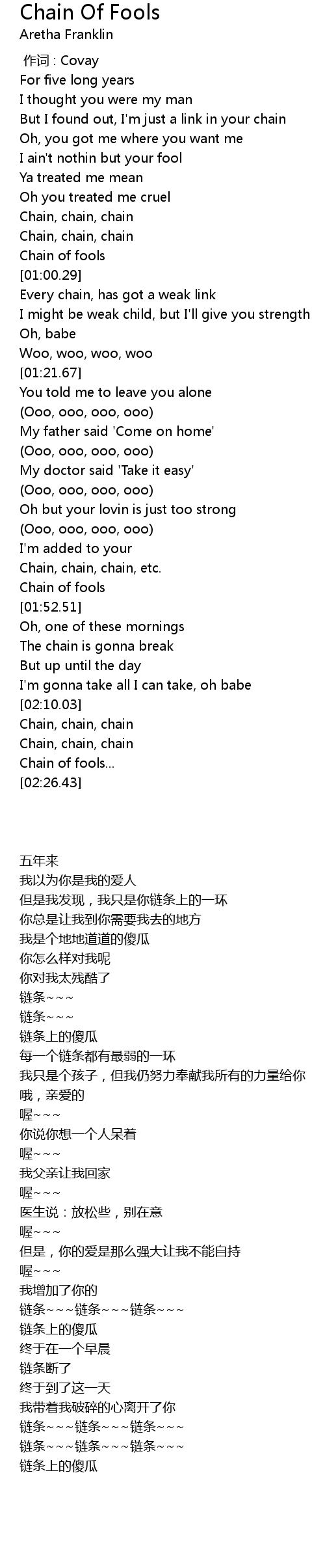 | [02:22.76] | Chain of fools... |