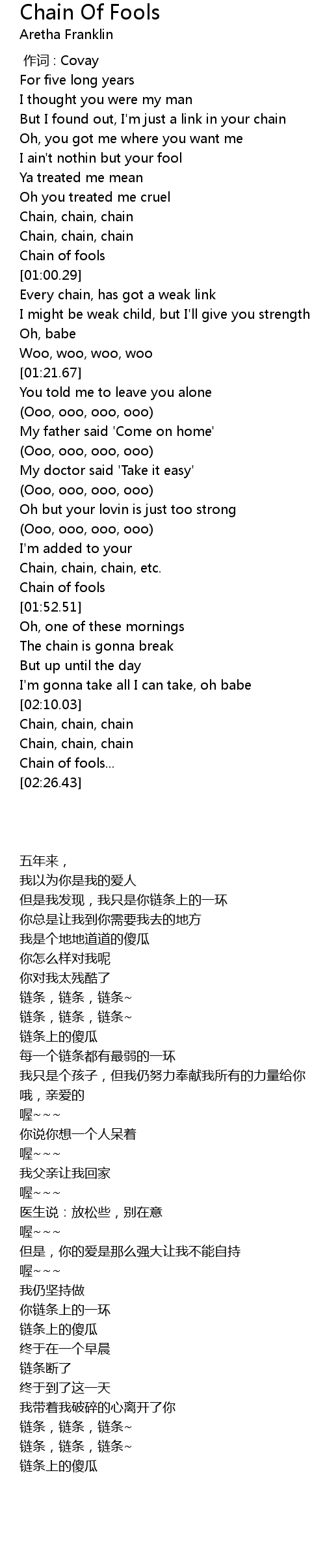 | [00:28.53] | But I found out, I'm just a link in your chain |