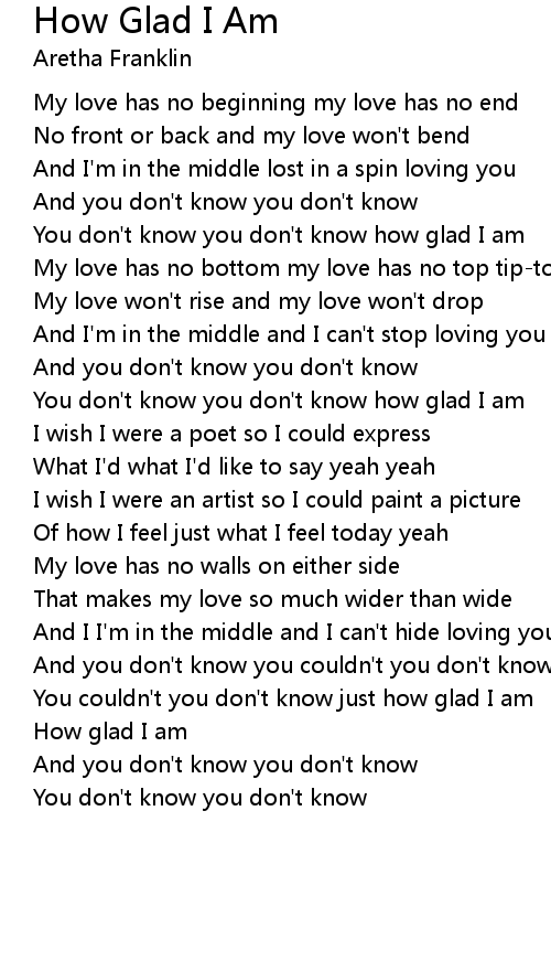 You don't know you don't know how glad I am |