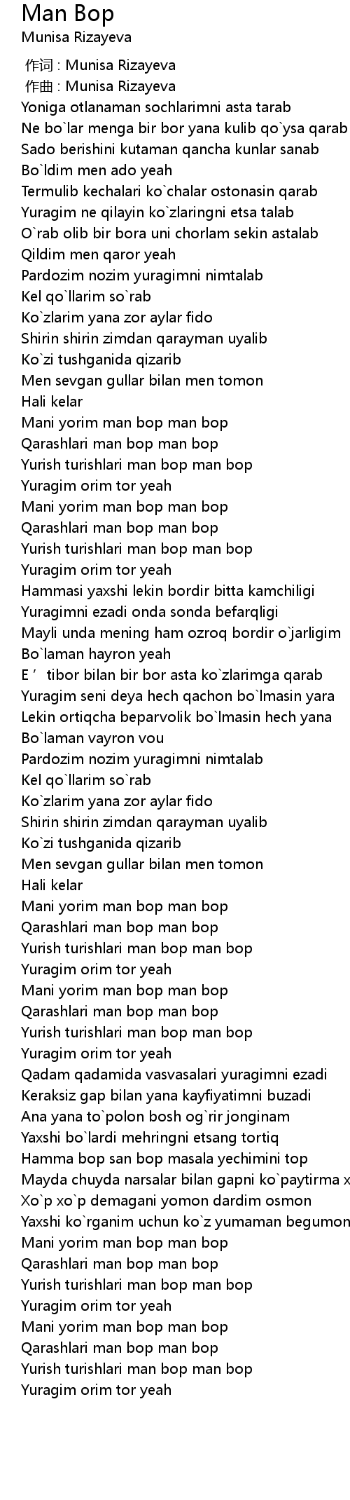 | [00:58.685] | Mani yorim man bop man bop |