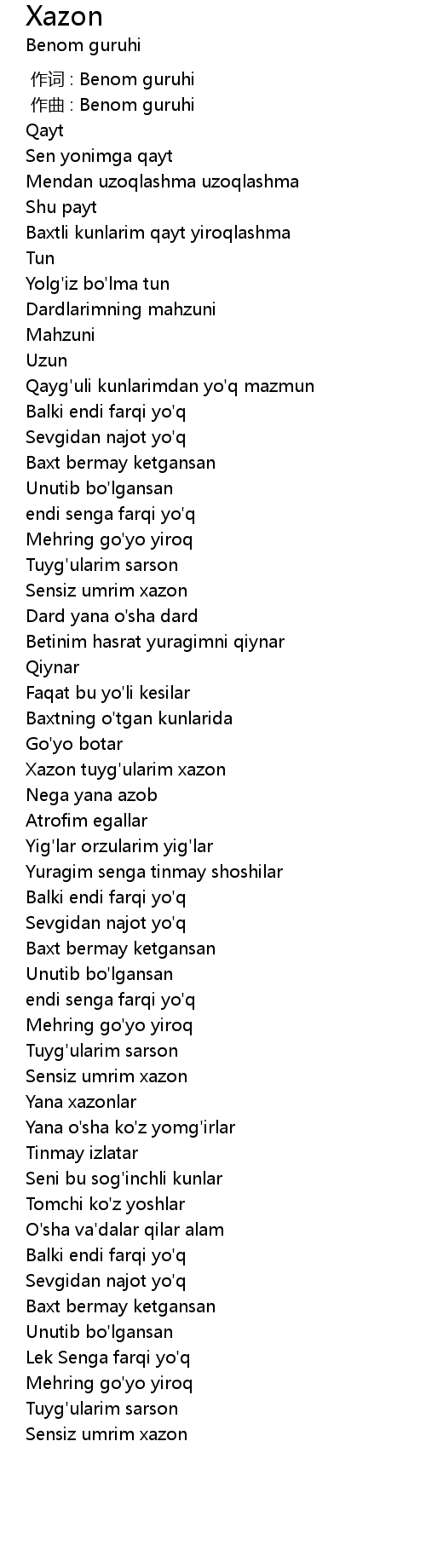 | [00:01.000] | zuò qǔ : Benom guruhi |