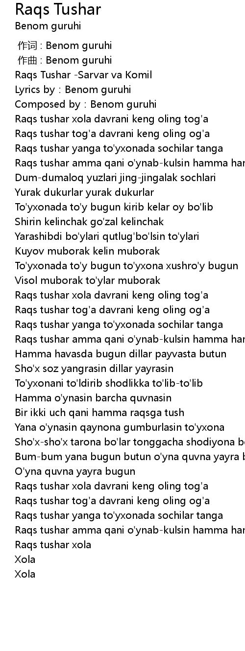 | [00:06.511] | Lyrics by:Benom guruhi |
