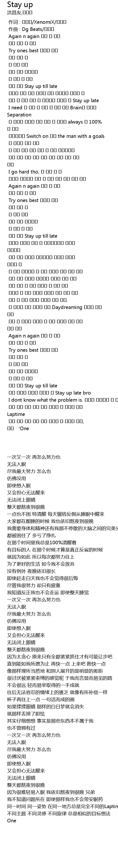 | [02:40.597] | 因为很难轻易入眠 我依旧熬夜到很晚 兄弟 |