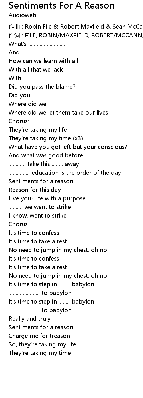 | 歌曲 | Sentiments For A Reason |