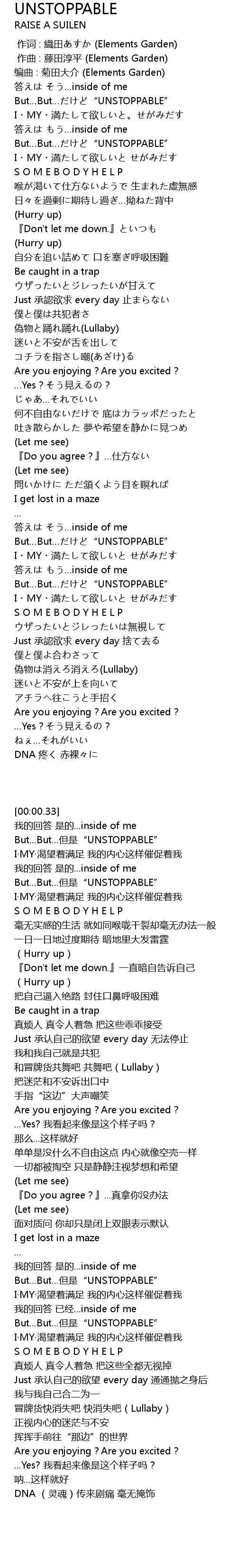 | [02:30.91] | But But" UNSTOPPABLE" |