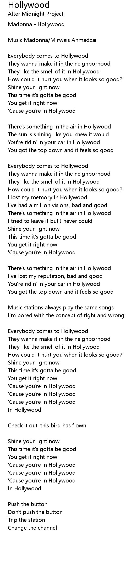 Hollywood 歌词
