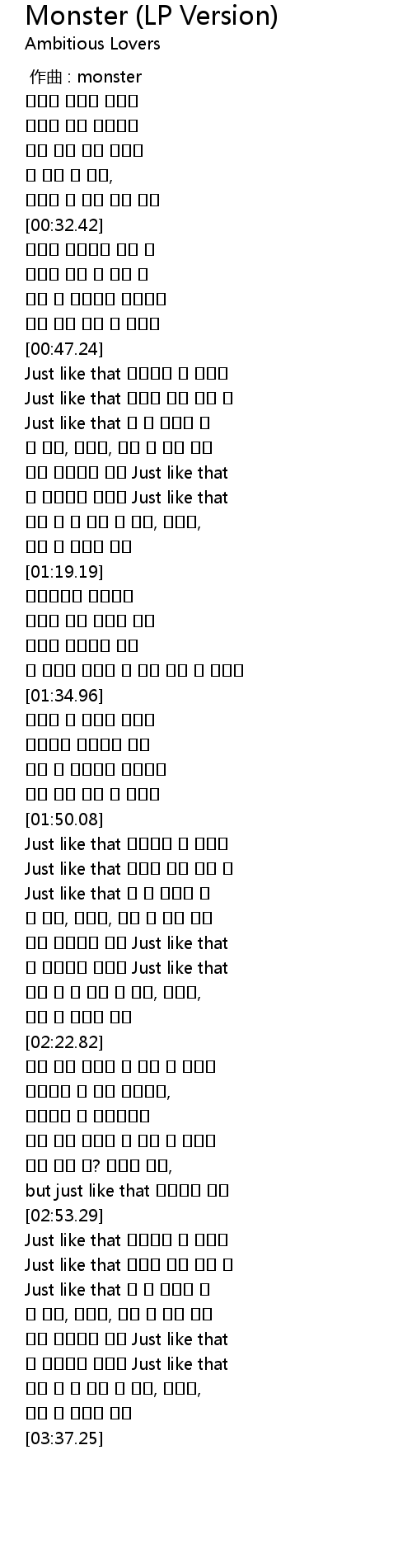 | [03:00.94] | Just like that 오 할 수없이 난 |